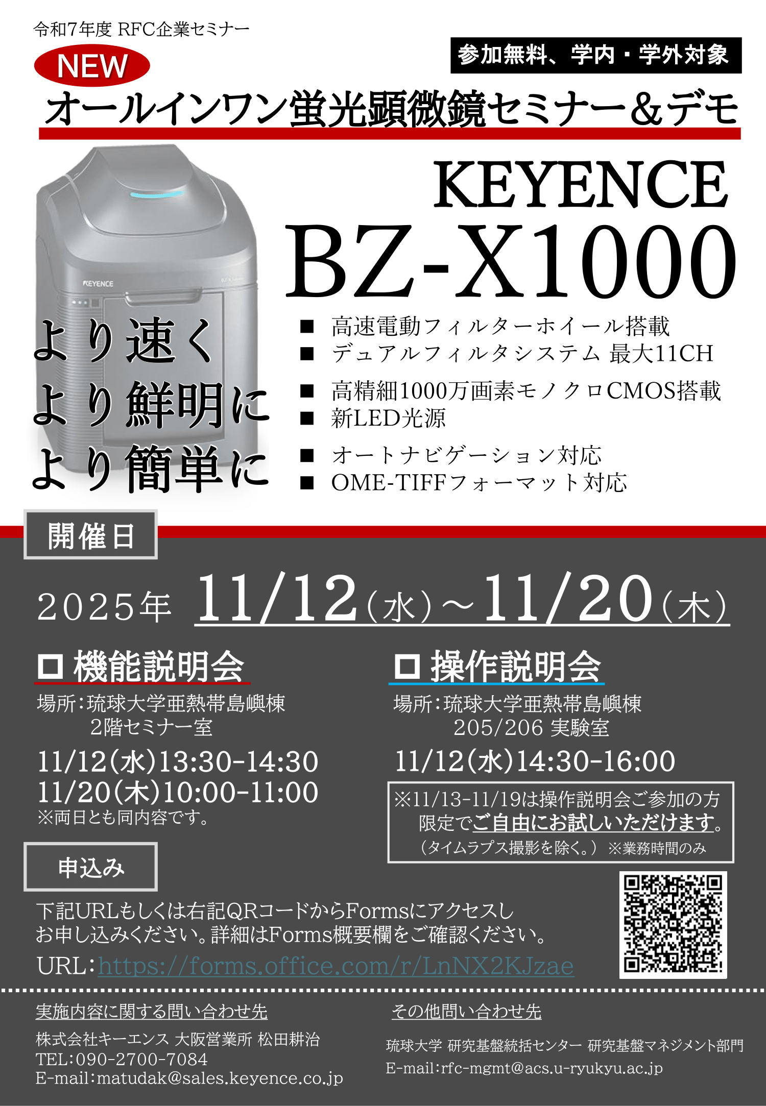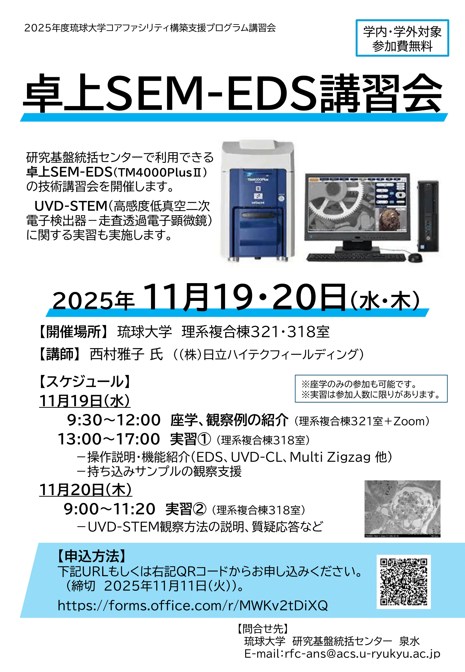 日時:2025年11/12(水)、11/20(木)場所:琉球大学 亜熱帯島嶼棟2階会議室 205/206実験室