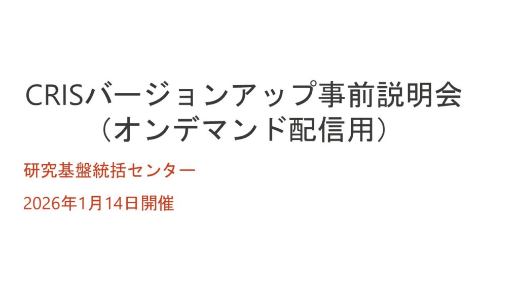 2026年1月14日に実施したCRISバージョンアップ事前説明会のオンデマンド配信用動画を公開します。